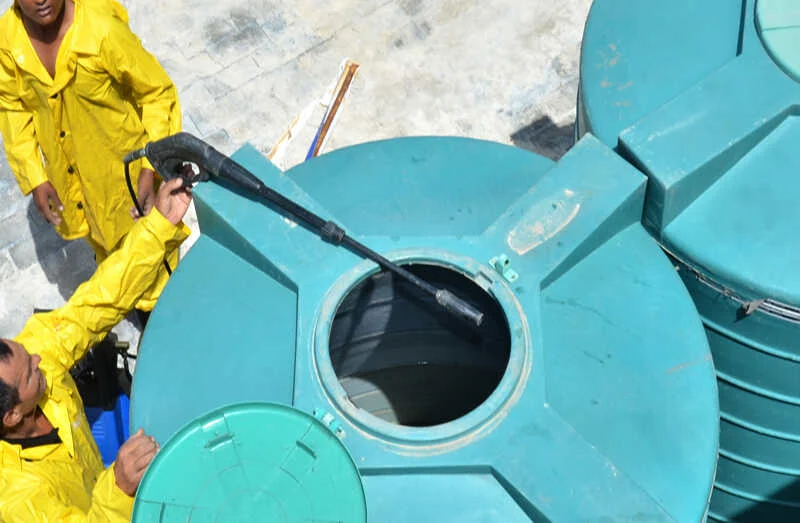 Before starting, we conduct a detailed inspection of your water tank to evaluate its condition and specific cleaning needs.